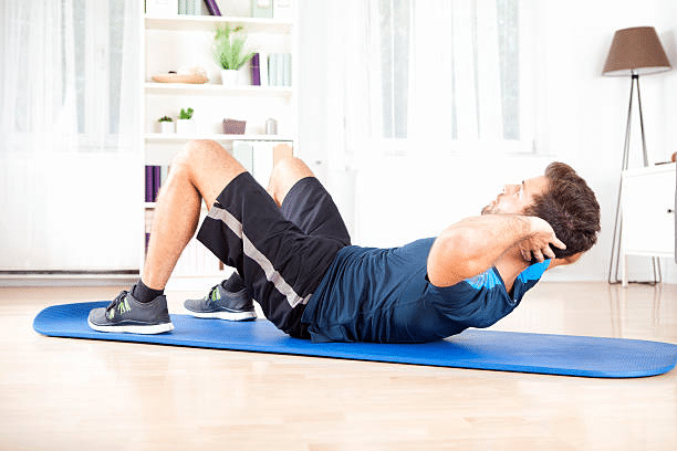 AllongĂ© sur le dos, jambes flĂ©chies, enroulez doucement la tĂȘte et les Ă©paules vers lâavant comme pour un mini-crunch ciblant la rĂ©gion thoracique. RĂ©pĂ©tez 15 fois.
